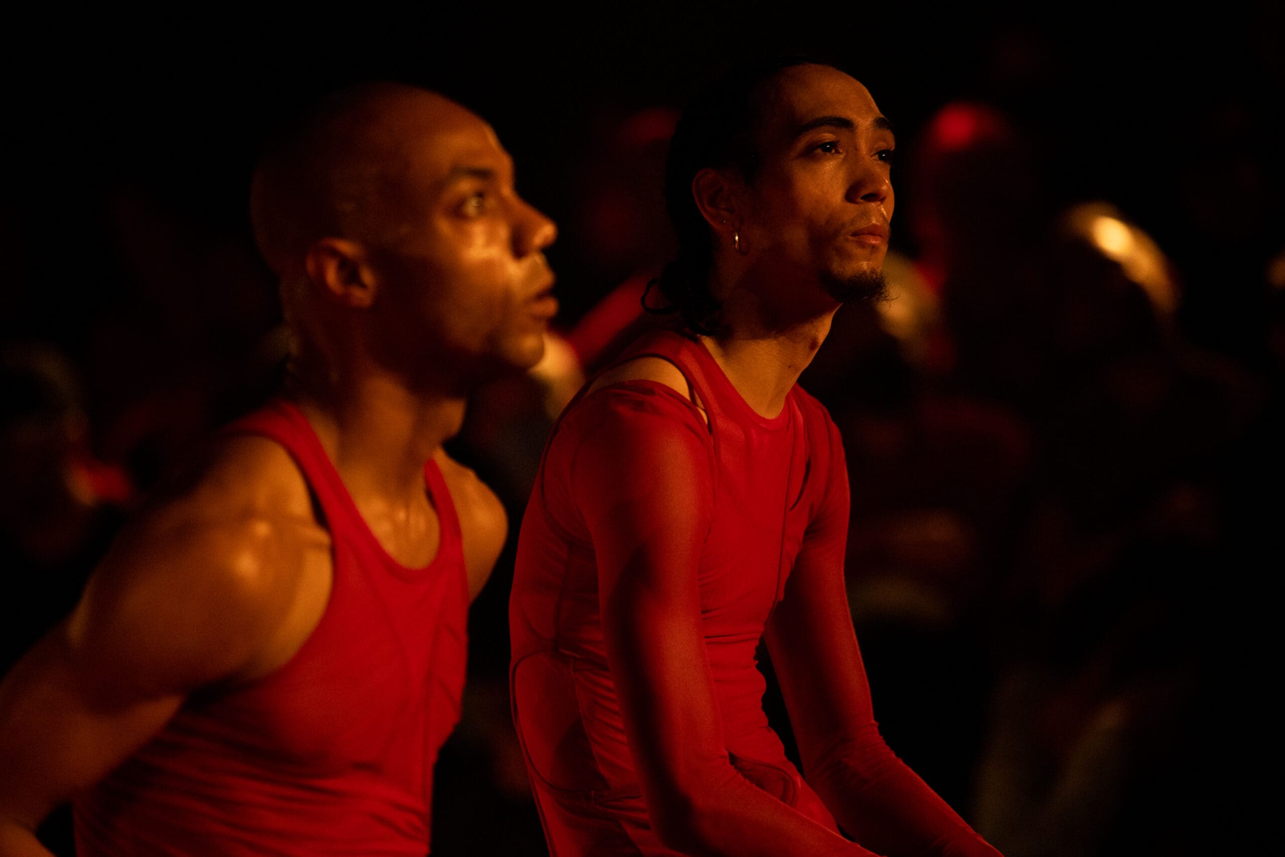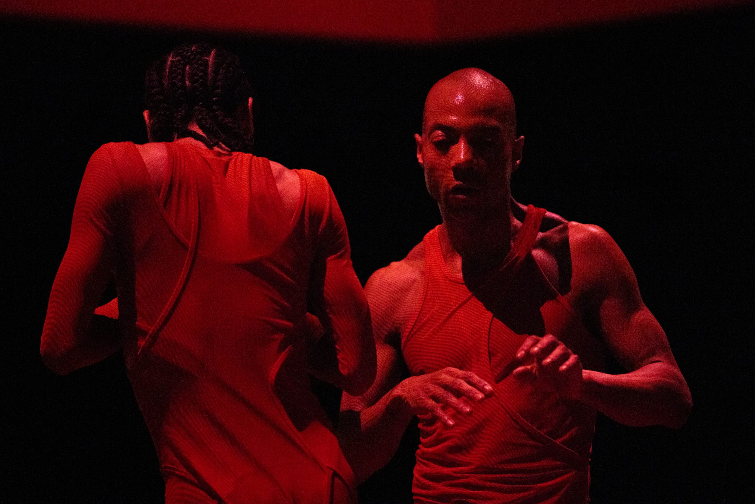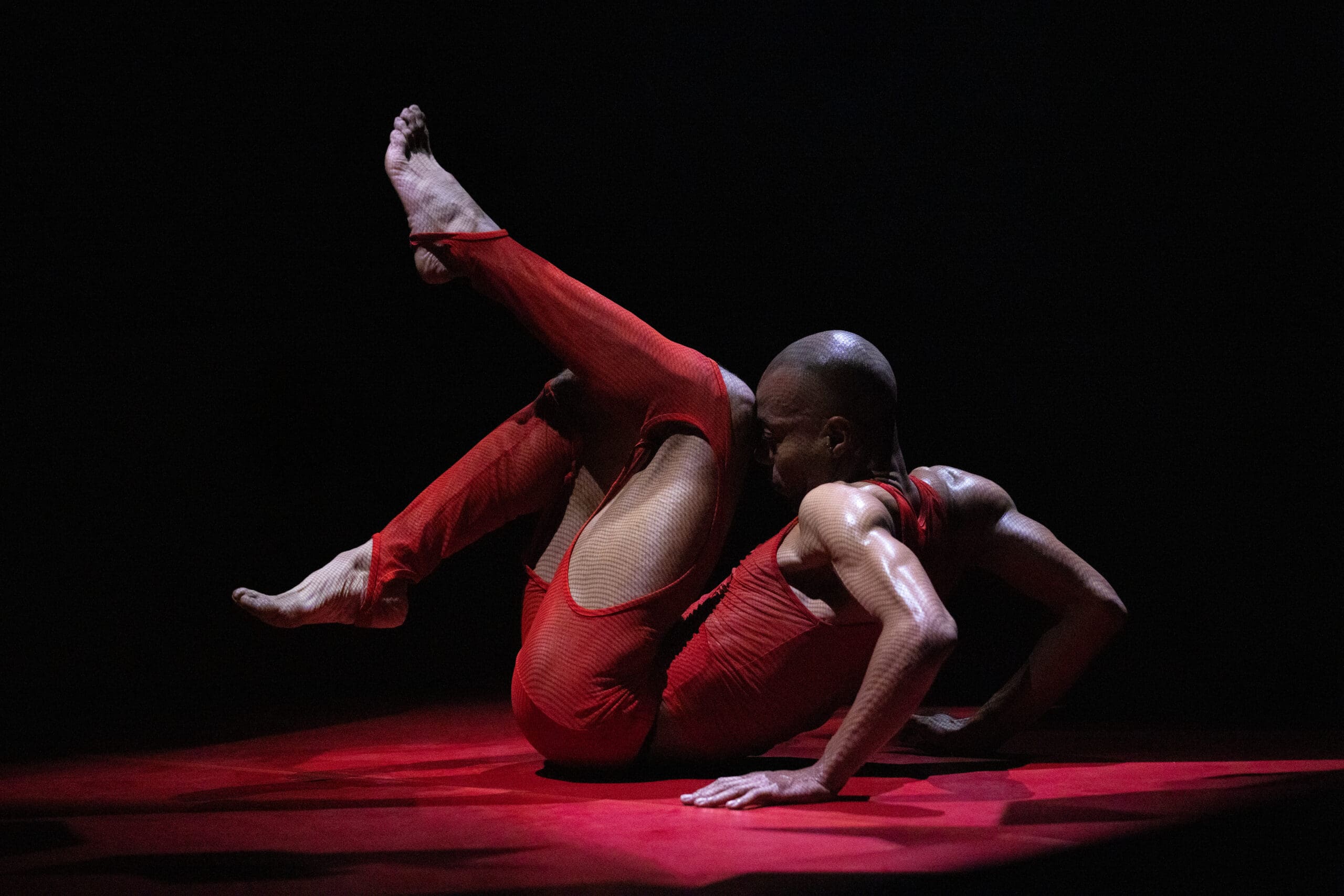 Touch of RED is a new evening-length multidisciplinary performance work consisting of a duet for two men inside a contemporary ring. Drawing inspiration from two distinct arts requiring rapid-fire footwork – boxing and the African-American jazz dance style Lindy Hop – this ten-round duet is performed by Pitts and Tushrik Fredericks who debuted with the Afrofuturistic collective in the critically-acclaimed 2022 show BLACK HOLE: Trilogy and Triathlon. Set in a stylized ring designed by the 2015 McArthur Fellow Mimi Lien and featuring cinematic video mapping by Lucca Del Carlo, lighting by the veteran Australian designer Rus Snelling, and costumes by the acclaimed experimental fashion star Dion Lee, Touch of RED examines the way Black men are perceived and perceive themselves in contemporary society and how masculinity and vulnerability can be reconciled in a non-competitive, compassionate, and healing way.